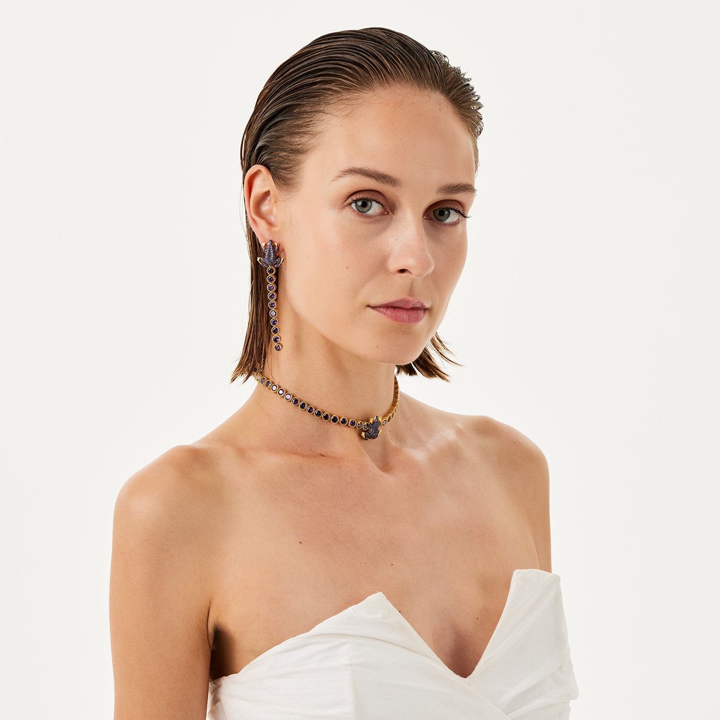 A playful yet sophisticated accessory that adds a touch of whimsy to any ensemble. Crafted with precision and attention to detail, this necklace features intricately designed frog symbol adorned with sparkling gems, creating a unique and eye-catching piece. Whether worn to a formal event or to elevate a casual look, this necklace effortlessly blends fun and elegance, making it a versatile addition to any jewelry collection. Embrace your playful side with our Frog Tennis Necklace and make a statement that's both chic and charming.