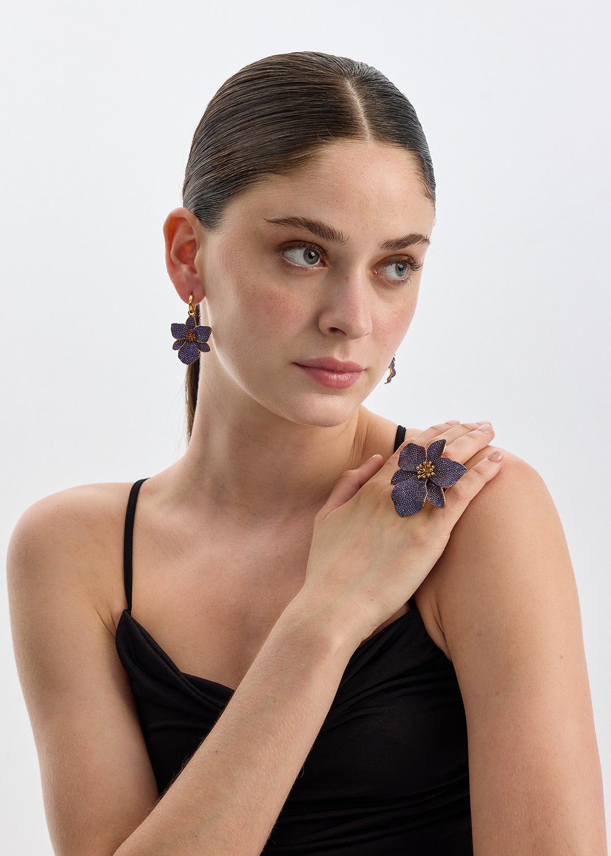 The petals of our lovely Singapore Orchids Earrings are covered in sparkly gemstones, centred around delicate gold stamens.