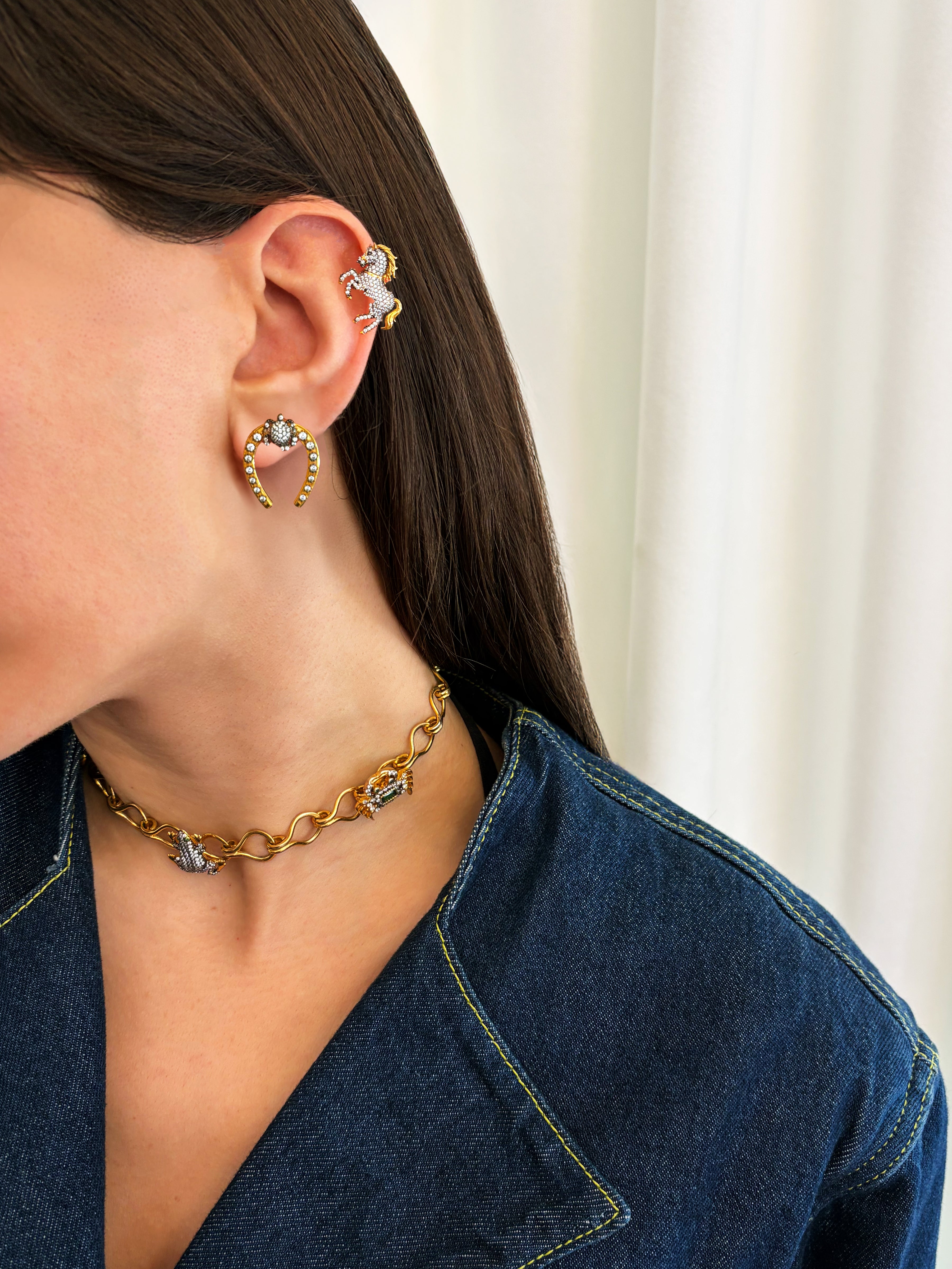 A finely detailed horse in miniature form, crafted as a single piercing. Discreet yet expressive, My Little Pony Piercing brings a playful elegance to the ear.