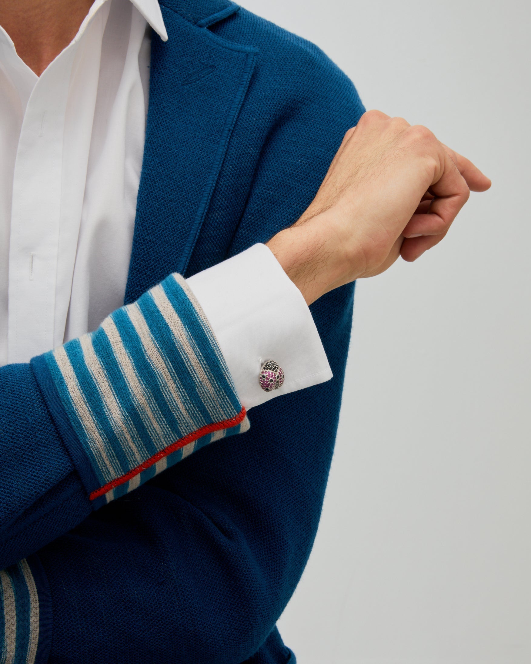 Add glamour and good luck to your accessories with these enchanting Lady Bug Cufflinks. Featuring plated bronze encrusted with dazzling crystals, the handwrought design looks fresh and unexpected peeking from beneath a jacket sleeve.